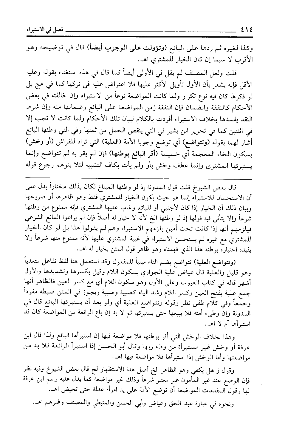 (وتتواضع العلية) تتواضع بضم التاء مبنيًّا للمفعول وقد استعمل هنا لفظ تفاعل متعديًا وهو قليل والعلية قال عياض علية الجواري بسكون اللام وقيل بكسرها وتشديدها والأول أشهر قاله في كتاب العيوب وعلى الأول وهو سكون اللام أي مع كسر العين فالظاهر أنها جمع علية بفتح العين وكسر اللام وشد الياء كصبية وصبية ويجوز في المتن ضبطه مفردًا وجمعًا وفي كلام طفى نظر وقوله وتتواضع العلية أي ولو بعد أن يستبرئها البائع قال في المدونة وإن وطئ أمته فلا يبيعها حتى يستبرئها ثم لا بد إن باع الرائعة من المواضعة كان قد استبرأها أم لا اهـ.