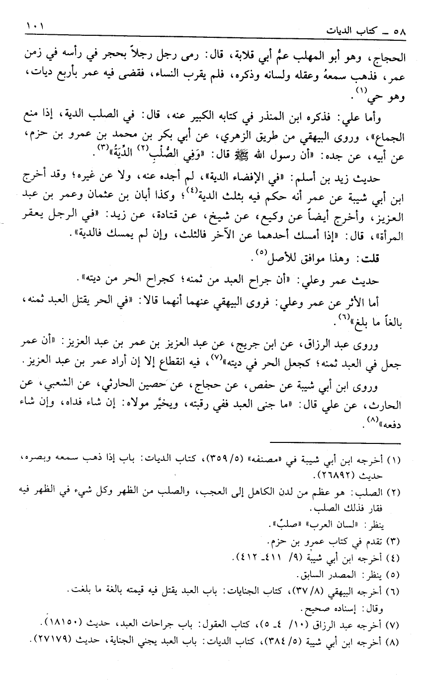 حَدِيثُ عُمَرَ وَعَلِيٍّ: "أَنَّ جِرَاحَ الْعَبْدِ مِنْ ثَمَنِهِ؛ كَجِرَاحِ الْحُرِّ مِنْ دِيَتِهِ".