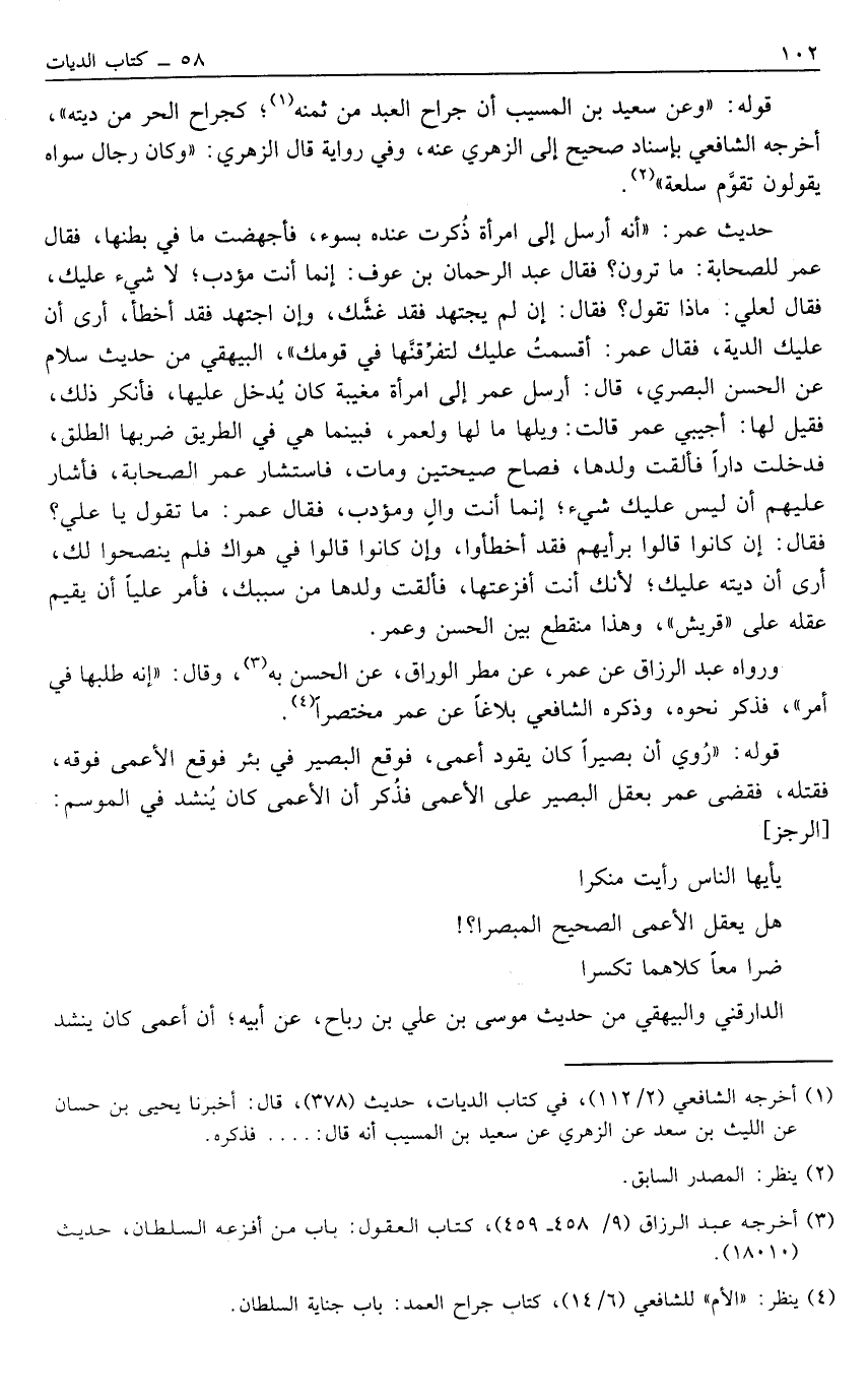 1 أخرجه الشافعي [2/ 112] ، في كتاب الديات، حديث [378] ، قال: أخبرنا يحيى بن حسان عن الليث بن سعيد عن الزهري عن سعيد بن المسيب أنه قال ... فذكره.