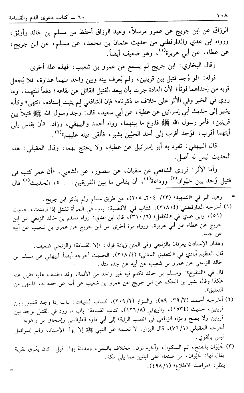 وهذان الإسنادان يعرفان بالزنجي وفي المتن زيادة قوله: "إلا القسامة" والزنجي ضعيف.