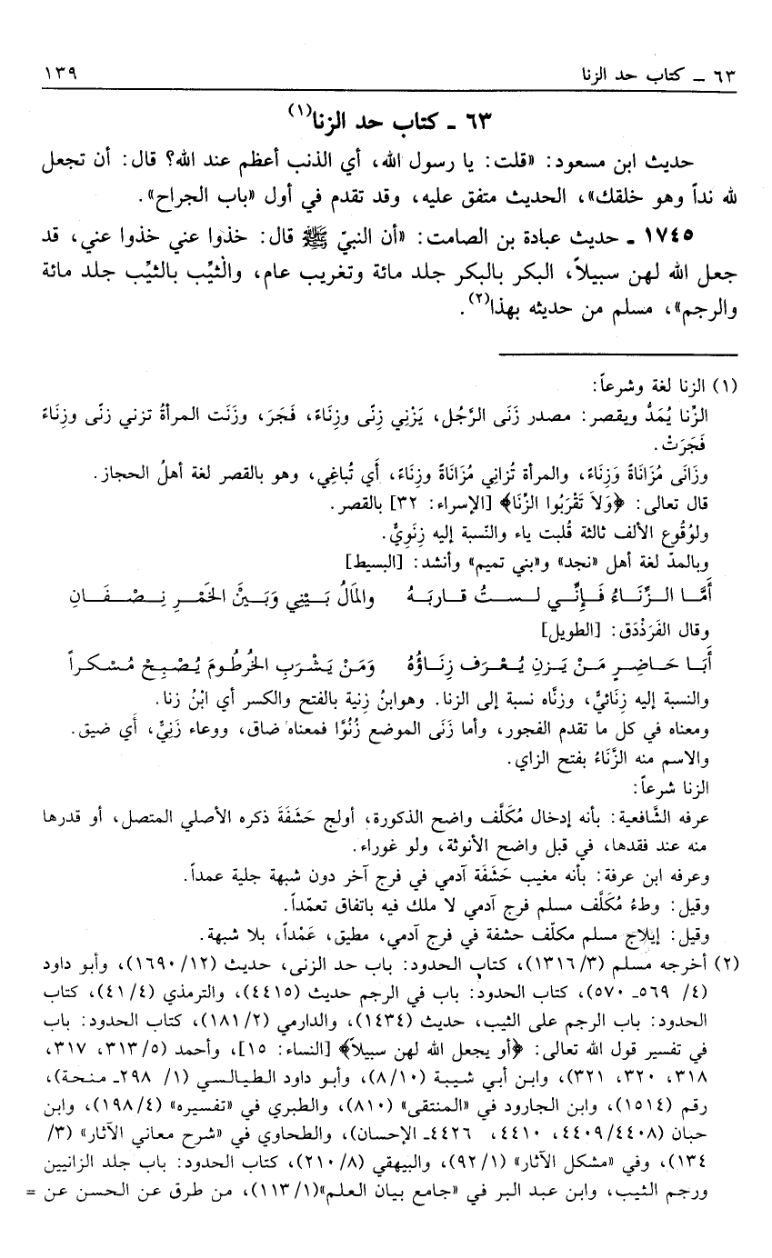 1745- حَدِيثُ عُبَادَةَ بْنِ الصَّامِتِ: "أَنَّ النَّبِيَّ صَلَّى اللَّهُ عَلَيْهِ وَسَلَّمَ قَالَ: "خُذُوا عَنِّي خُذُوا عَنِّي، قَدْ جَعَلَ اللَّهُ لَهُنَّ سَبِيلًا، الْبِكْرُ بِالْبِكْرِ جَلْدُ مِائَةٍ وَتَغْرِيبُ عَامٍ، وَالثَّيِّبُ بِالثَّيِّبِ جَلْدُ مِائَةٍ وَالرَّجْمُ"، مُسْلِمٌ مِنْ حَدِيثِهِ بِهَذَا2.