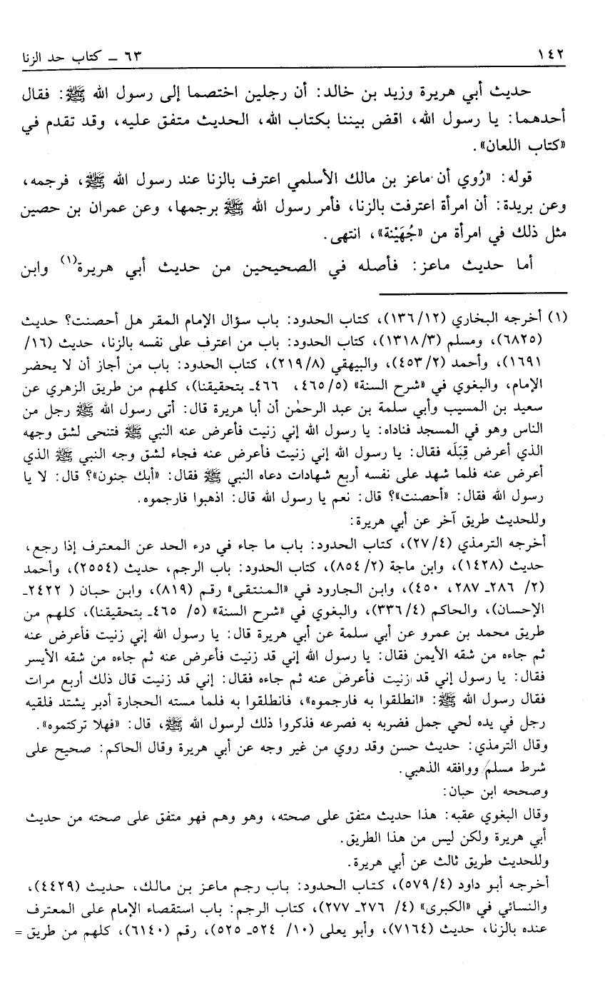 قَوْلُهُ: "رُوِيَ أَنَّ مَاعِزَ بْنَ مَالِكٍ الْأَسْلَمِيَّ اعْتَرَفَ بِالزِّنَا عِنْدَ رَسُولِ اللَّهِ صَلَّى اللَّهُ عَلَيْهِ وَسَلَّمَ فَرَجَمَهُ، وَعَنْ بُرَيْدَةَ: أَنَّ امْرَأَةً اعْتَرَفَتْ بِالزِّنَا، فَأَمَرَ رَسُولُ اللَّهِ صَلَّى اللَّهُ عَلَيْهِ وَسَلَّمَ بِرَجْمِهَا، وَعَنْ عِمْرَانَ بْنِ حُصَيْنٍ مِثْلُ ذَلِكَ فِي امْرَأَةٍ مِنْ "جُهَيْنَةَ"، انْتَهَى.