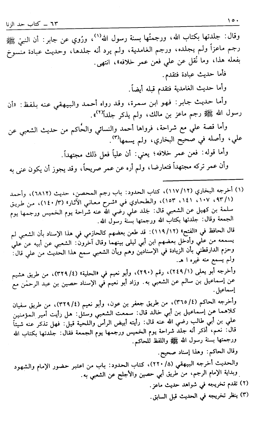 1 أخرجه البخاري [12/ 117] ، كتاب الحدود: باب رجم المحصن، حديث [6812] ، وأحمد [1/ 93، 107، 141، 153] ، والطحاوي في "شرح معاني الآثار" [3/ 140] ، من طريق سلمة بن كهيل عن الشعبي قال: جلد علي رضي الله عنه شراحة يوم الخميس ورجمها يوم الجمعة وقال: جلدتها بكتاب الله ورجمتها بسنة رسول الله.