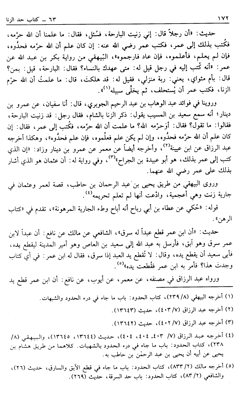 4 أخرجه عبد الرزاق [7/ 403- 404، 404] ، حديث [13644، 13645] ، والبيهقي [8/ 238] ، كتاب الحدود: باب ما جاء في درء الحدود بالشبهات. كلاهما من طريق هشام بن يحيى عن أبيه أن يحيى بن عبد الرحمن بن حاطب به.