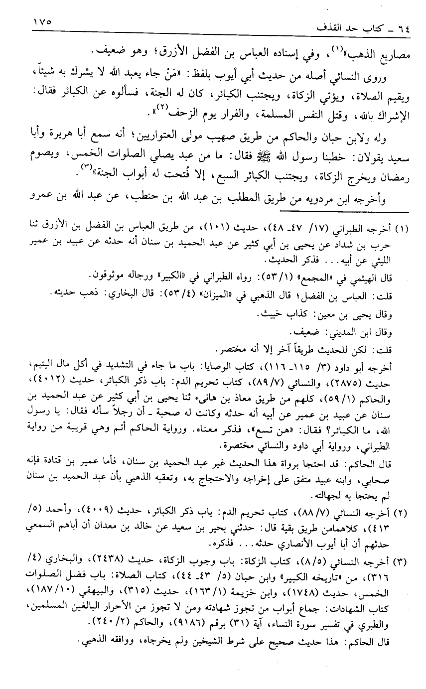 3 أخرجه النسائي [5/ 8] ، كتاب الزكاة: باب وجوب الزكاة، حديث [2438] ، والبخاري [4/ 316] ، من "تاريخه الكبير" وابن حبان [5/ 43- 44] ، كتاب الصلاة: باب فضل الصلوات الخمس، حديث [1748] ، وابن خزيمة [1/ 163] ، حديث [315] ، والبيهقي [10/ 187] ، كتاب الشهادات: جماع أبواب من تجوز شهادته ومن لا تجوز من الأحرار البالغين المسلمين، والطبري في تفسير سورة النساء، آية [31] برقم [9186] ، والحاكم [2/ 240] .