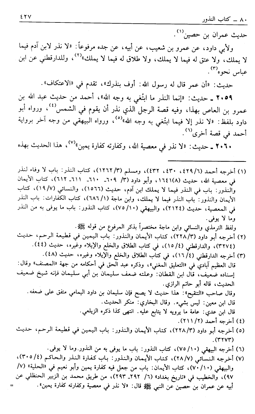 2060- حَدِيثُ: "لَا نَذْرَ فِي مَعْصِيَةِ اللَّهِ, وَكَفَّارَتُهُ كَفَّارَةُ يَمِينٍ" 7, هَذَا الْحَدِيثُ بِهَذِهِ