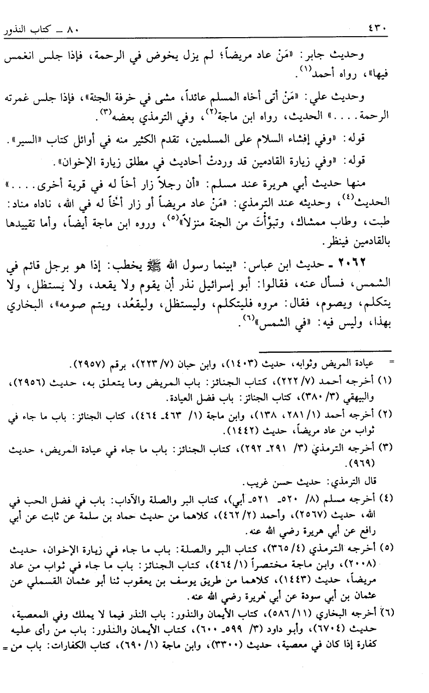 1 أخرجه أحمد [7/ 222] ، كتاب الجنائز: باب المريض وما يتقلق به، حديث [2956] ، والبيهقي [3/ 380] ، كتاب الجنائز: باب فضل العيادة.