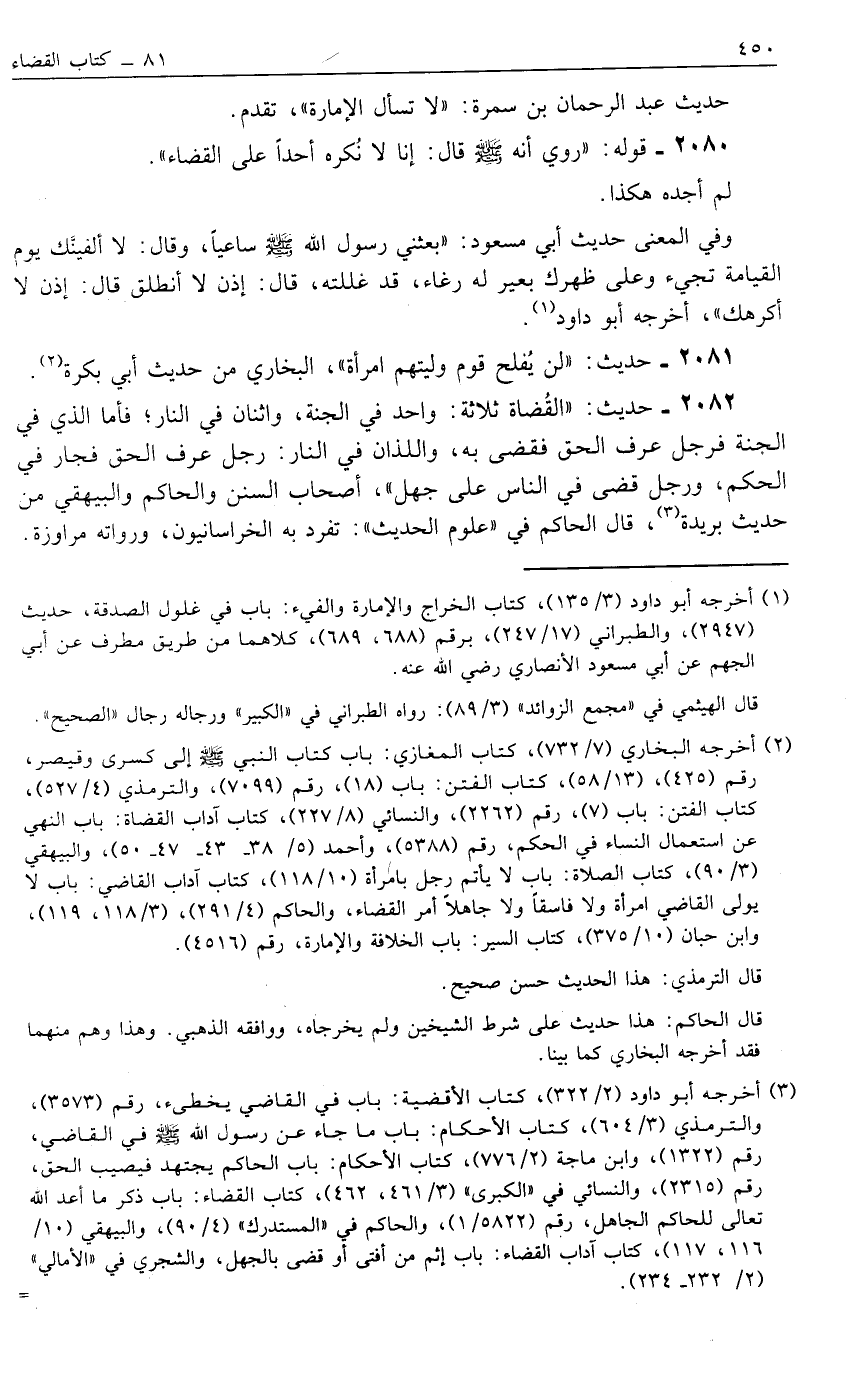 2081- حَدِيثُ: "لَنْ يُفْلِحَ قَوْمٌ وَلِيَتْهُمْ امْرَأَةٌ"، الْبُخَارِيُّ مِنْ حَدِيثِ أَبِي بَكْرَةَ2.