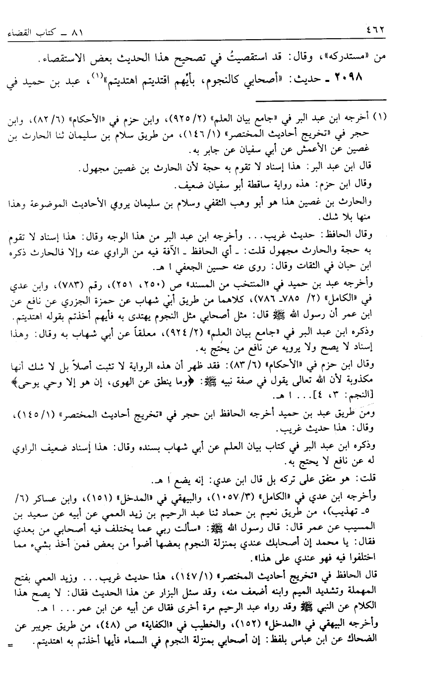 2098- حَدِيثُ: "أَصْحَابِي كَالنُّجُومِ، بِأَيِّهِمْ اقْتَدَيْتُمْ اهْتَدَيْتُمْ" 1، عَبْدُ بْنُ حُمَيْدٍ فِي
