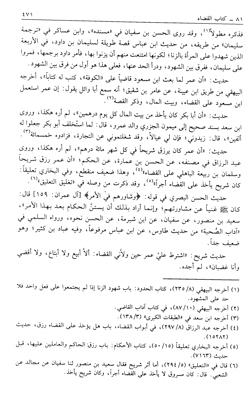 6 قال في "التعليق" [5/ 294] , أما أثر شريح فقال سعيد بن منصور ثنا سفيان عن مجالد عن الشعبي. قال: كان مسروق لا يأخذ على القضاء أجرا، وكان شريح يأخذ.