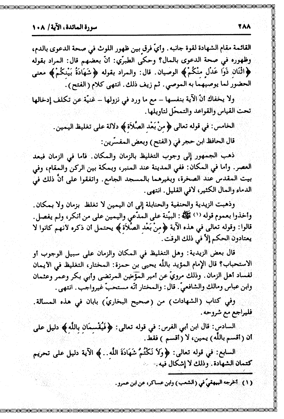قالوا: وقوله تعالى في هذه الآية مِنْ بَعْدِ الصَّلاةِ يحتمل أن ذكره لأنهم كانوا لا يعتادون الحكم إلّا في ذلك الوقت.