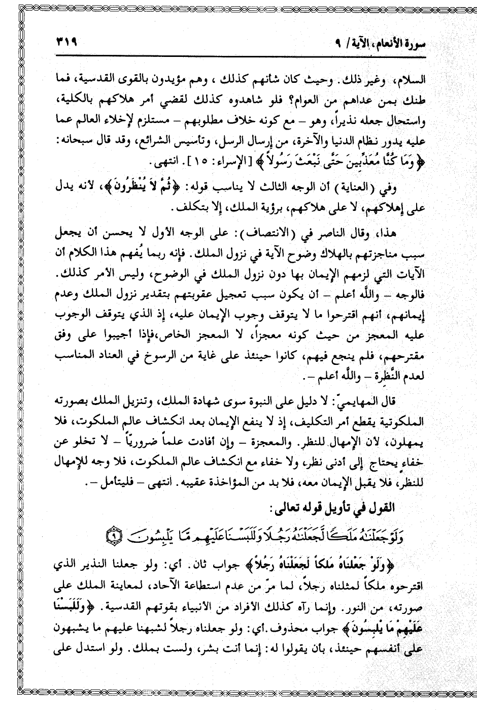 وَلَوْ جَعَلْناهُ مَلَكاً لَجَعَلْناهُ رَجُلاً وَلَلَبَسْنا عَلَيْهِمْ ما يَلْبِسُونَ (9)