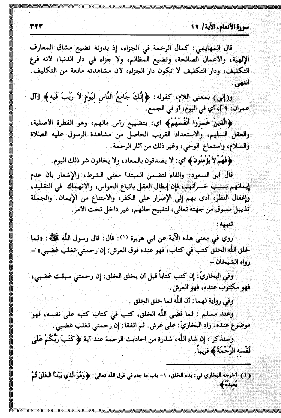 وسنذكر، إن شاء الله، شذرة من أحاديث الرحمة عند آية كَتَبَ رَبُّكُمْ عَلى نَفْسِهِ الرَّحْمَةَ قريبا.