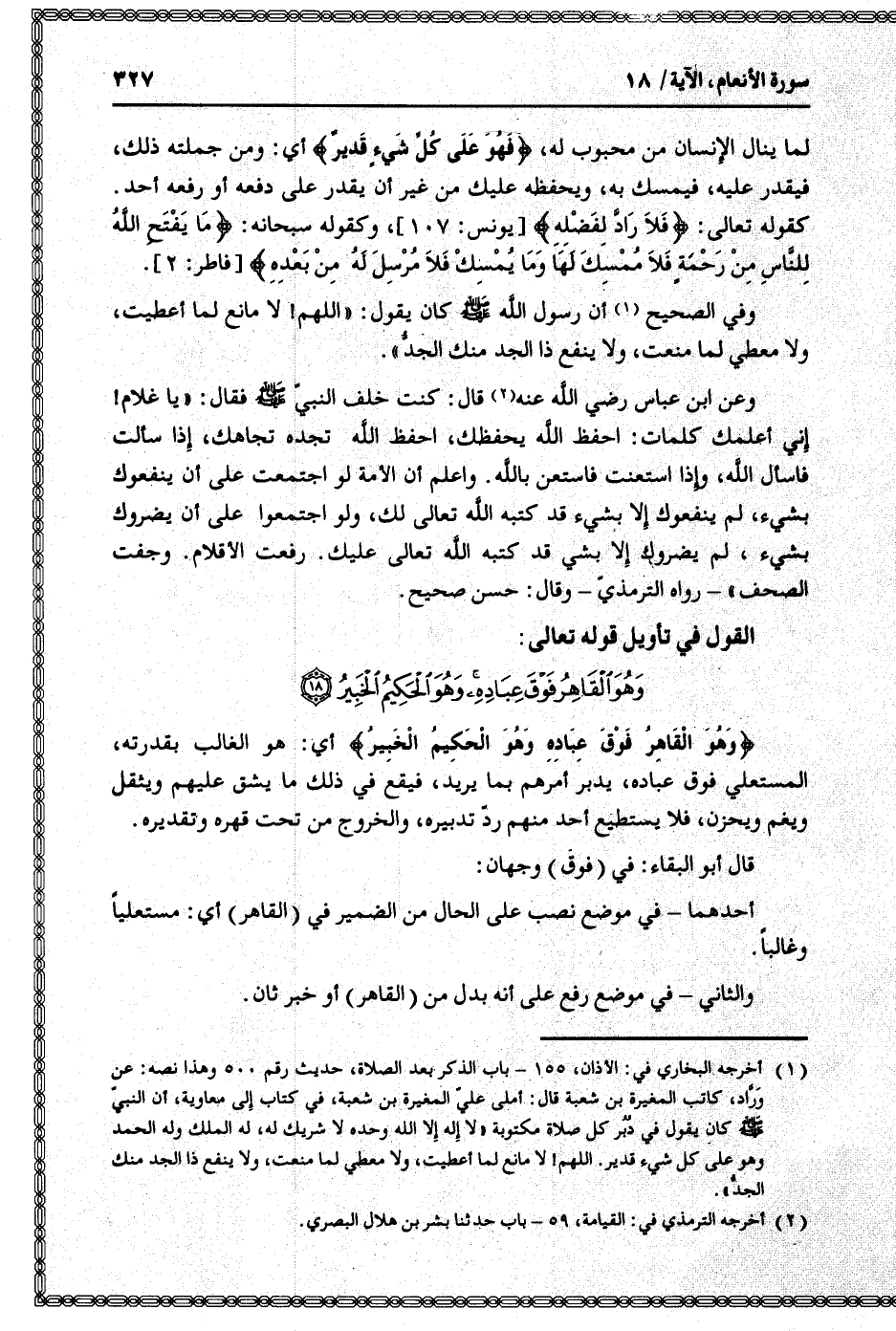 القول في تأويل قوله تعالى: [سورة الأنعام (6) : آية 18]