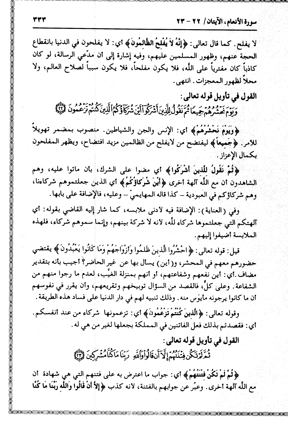 القول في تأويل قوله تعالى: [سورة الأنعام (6) : آية 22]