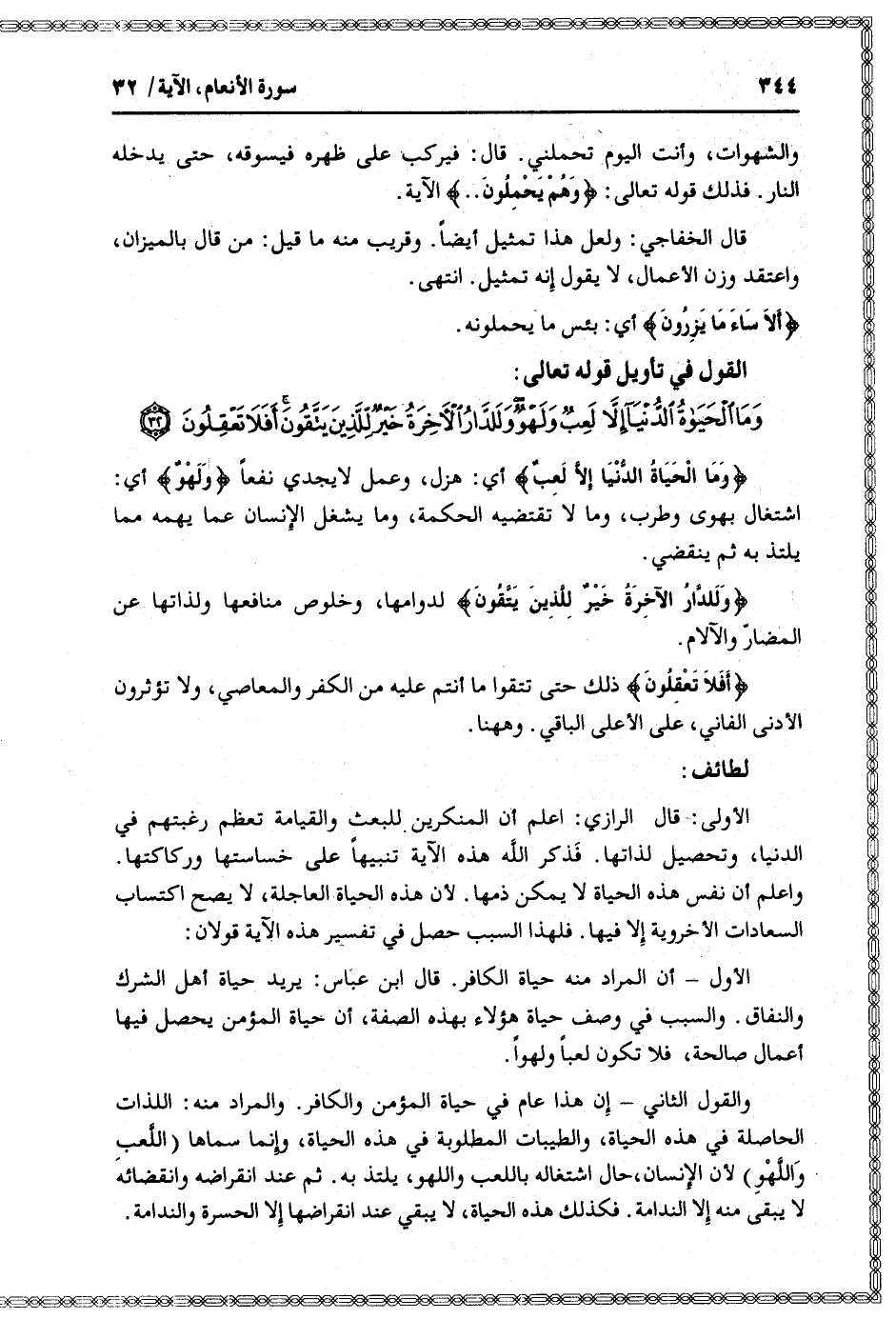 وَمَا الْحَياةُ الدُّنْيا إِلاَّ لَعِبٌ وَلَهْوٌ وَلَلدَّارُ الْآخِرَةُ خَيْرٌ لِلَّذِينَ يَتَّقُونَ أَفَلا تَعْقِلُونَ (32)