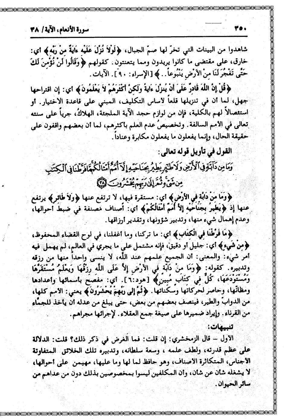 القول في تأويل قوله تعالى: [سورة الأنعام (6) : آية 38]