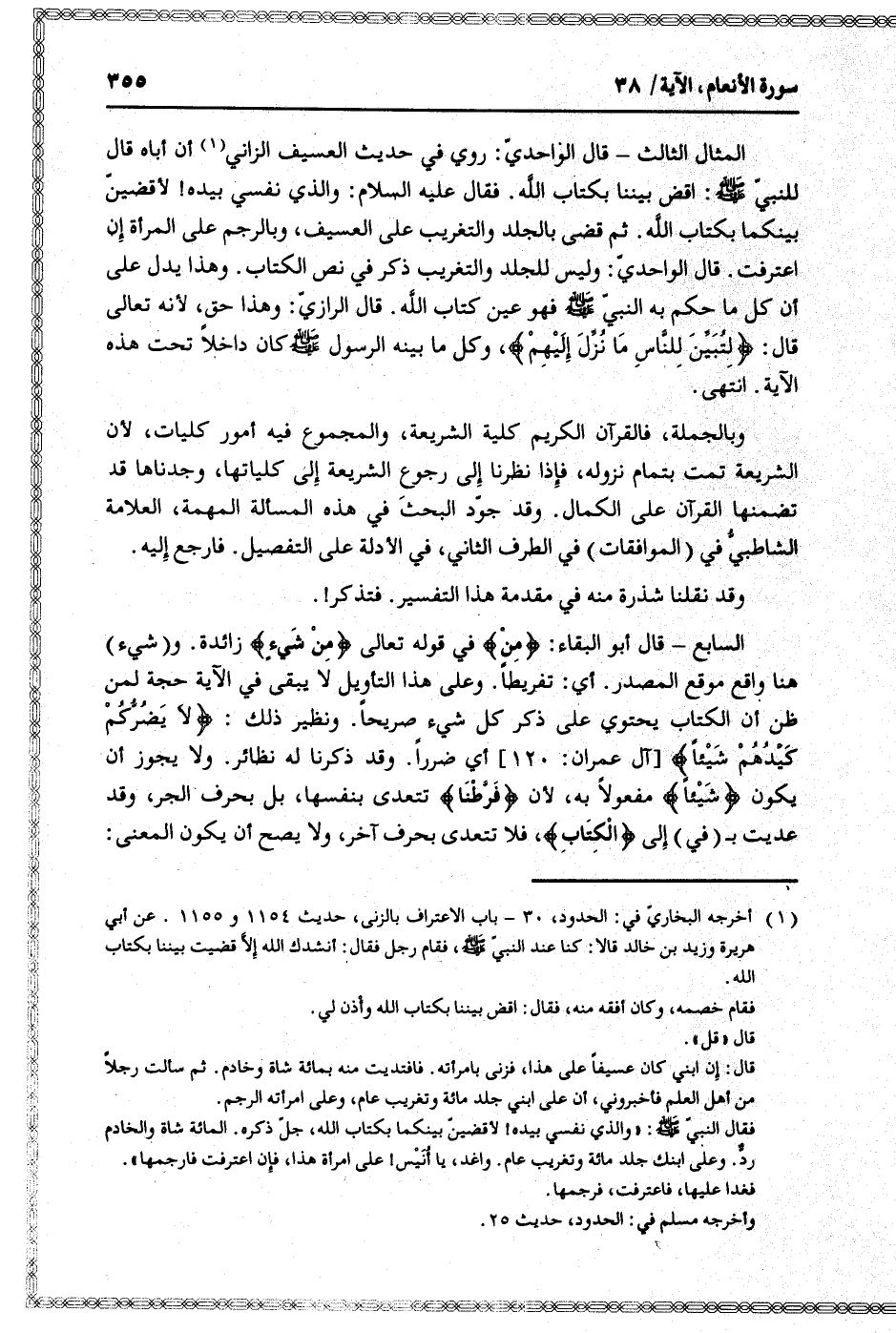 . قال الواحديّ: وليس للجلد والتغريب ذكر في نص الكتاب. وهذا يدل على أن كل ما حكم به النبيّ صلى الله عليه وسلم فهو عين كتاب الله. قال الرازيّ: وهذا حق، لأنه تعالى قال: لِتُبَيِّنَ لِلنَّاسِ ما نُزِّلَ إِلَيْهِمْ، وكل ما بينه الرسول صلى الله عليه وسلم كان داخلا تحت هذه الآية. انتهى.