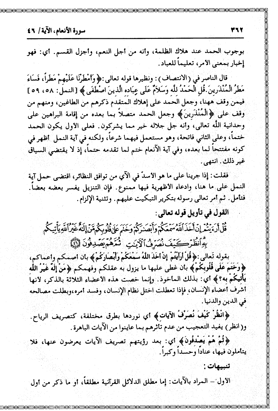 القول في تأويل قوله تعالى: [سورة الأنعام (6) : آية 46]