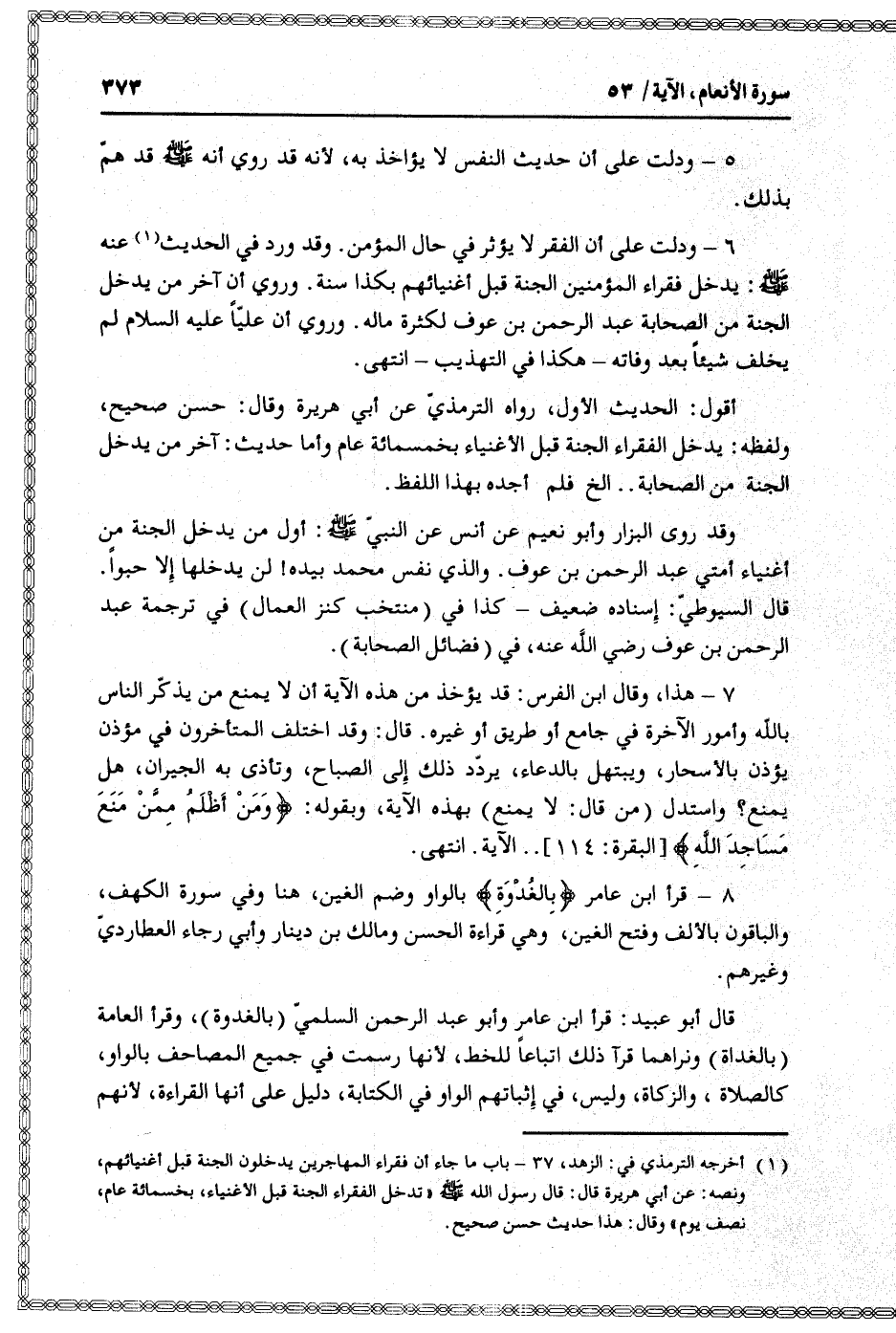 8- قرأ ابن عامر (بالغدوة) بالواو وضم الغين، هنا وفي سورة الكهف، والباقون بالألف وفتح الغين، وهي قراءة الحسن ومالك بن دينار وأبي رجاء العطارديّ وغيرهم.