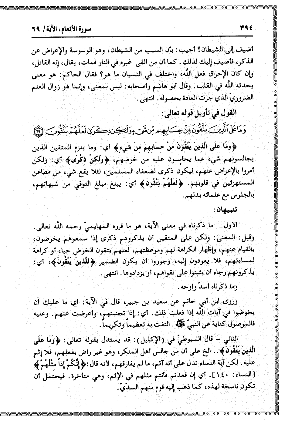 القول في تأويل قوله تعالى: [سورة الأنعام (6) : آية 69]