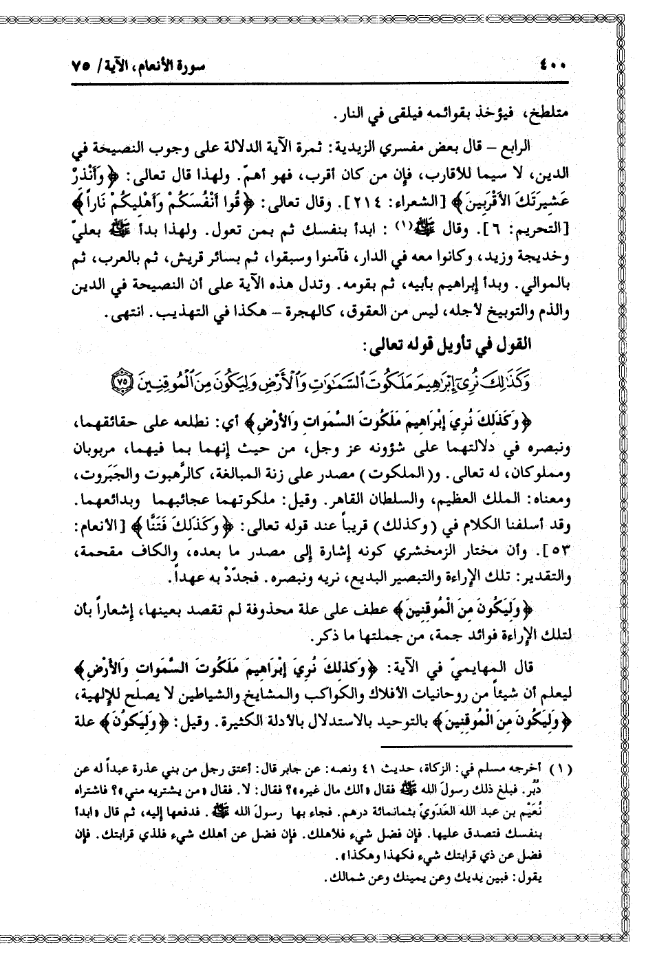 القول في تأويل قوله تعالى: [سورة الأنعام (6) : آية 75]