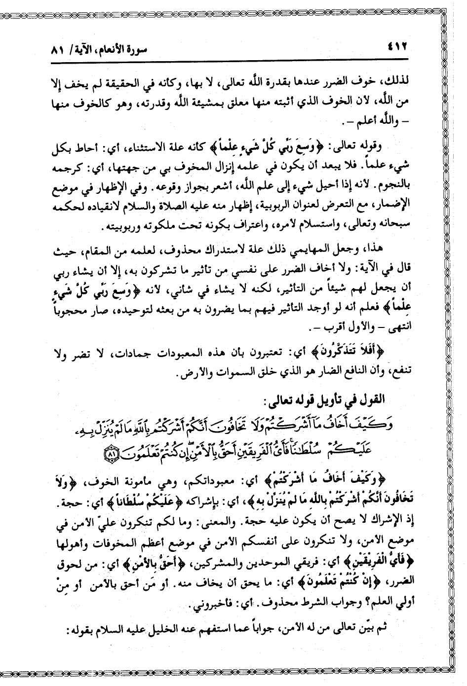 القول في تأويل قوله تعالى: [سورة الأنعام (6) : آية 81]