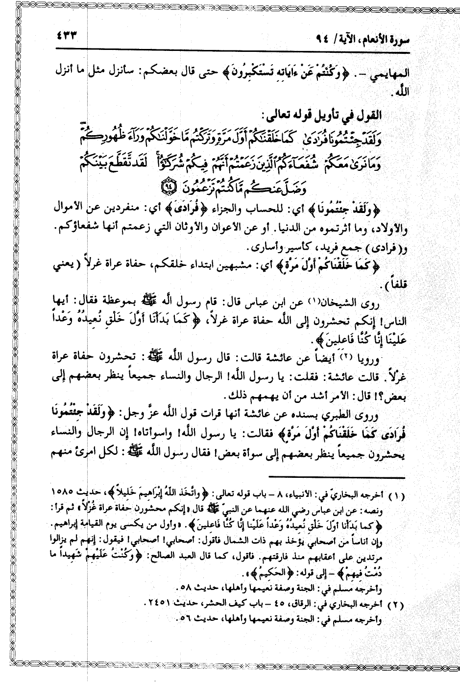 . (2) أخرجه البخاري في: الرقاق، 45- باب كيف الحشر، حديث 2451.
