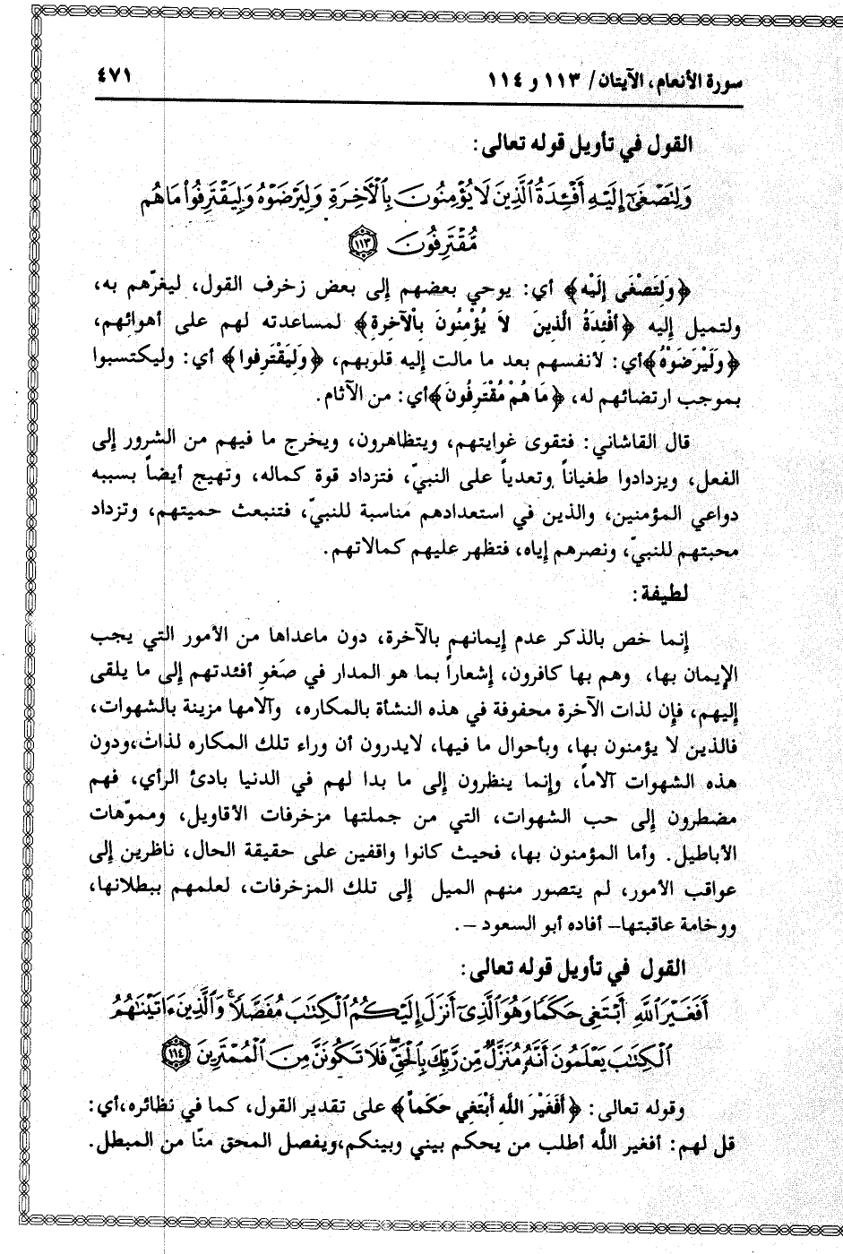القول في تأويل قوله تعالى: [سورة الأنعام (6) : آية 113]