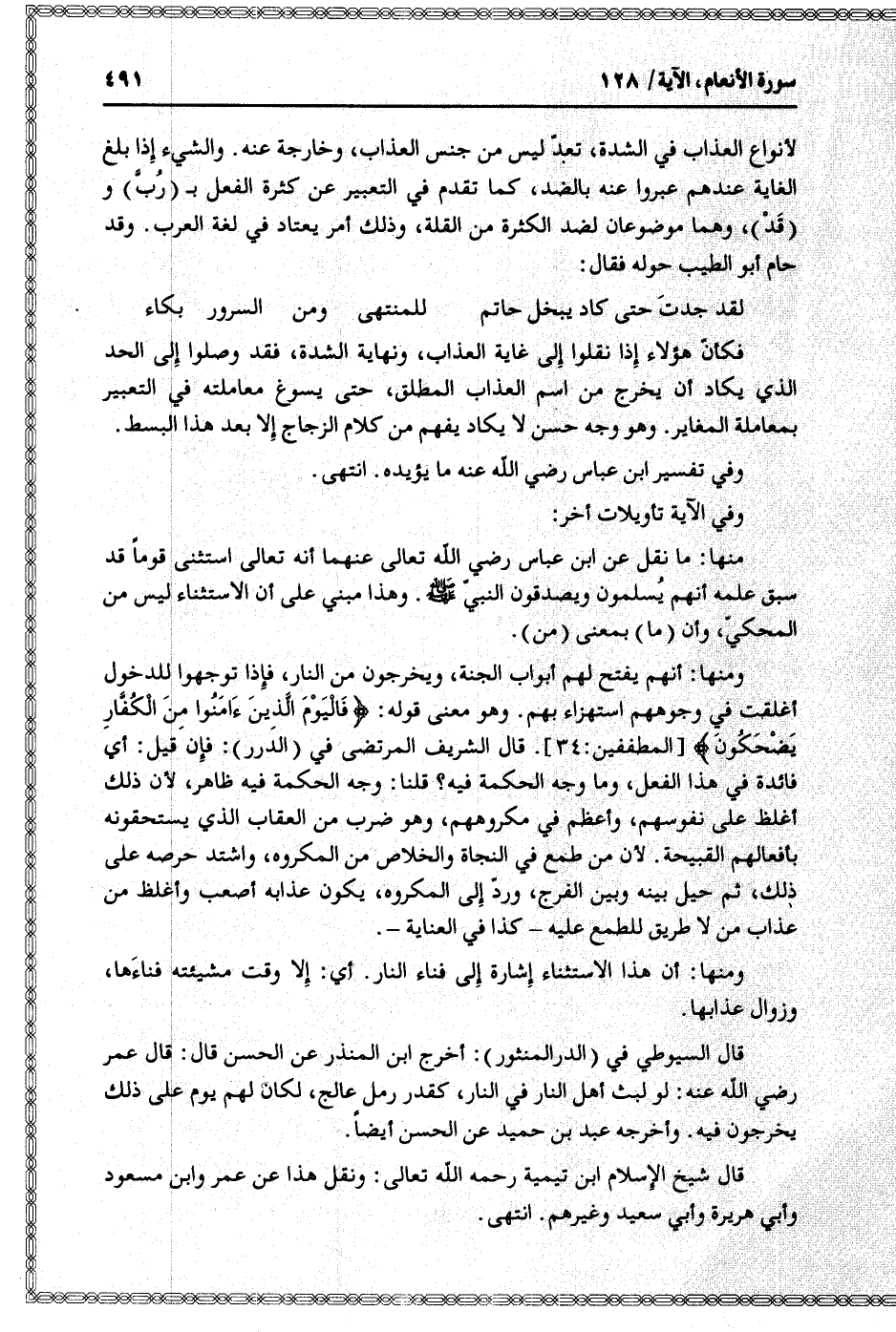 قال السيوطي في (الدر المنثور) : أخرج ابن المنذر عن الحسن قال: قال عمر رضي الله عنه: لو لبث أهل النار في النار، كقدر رمل عالج، لكان لهم يوم على ذلك يخرجون فيه. وأخرجه عبد بن حميد عن الحسن أيضا.