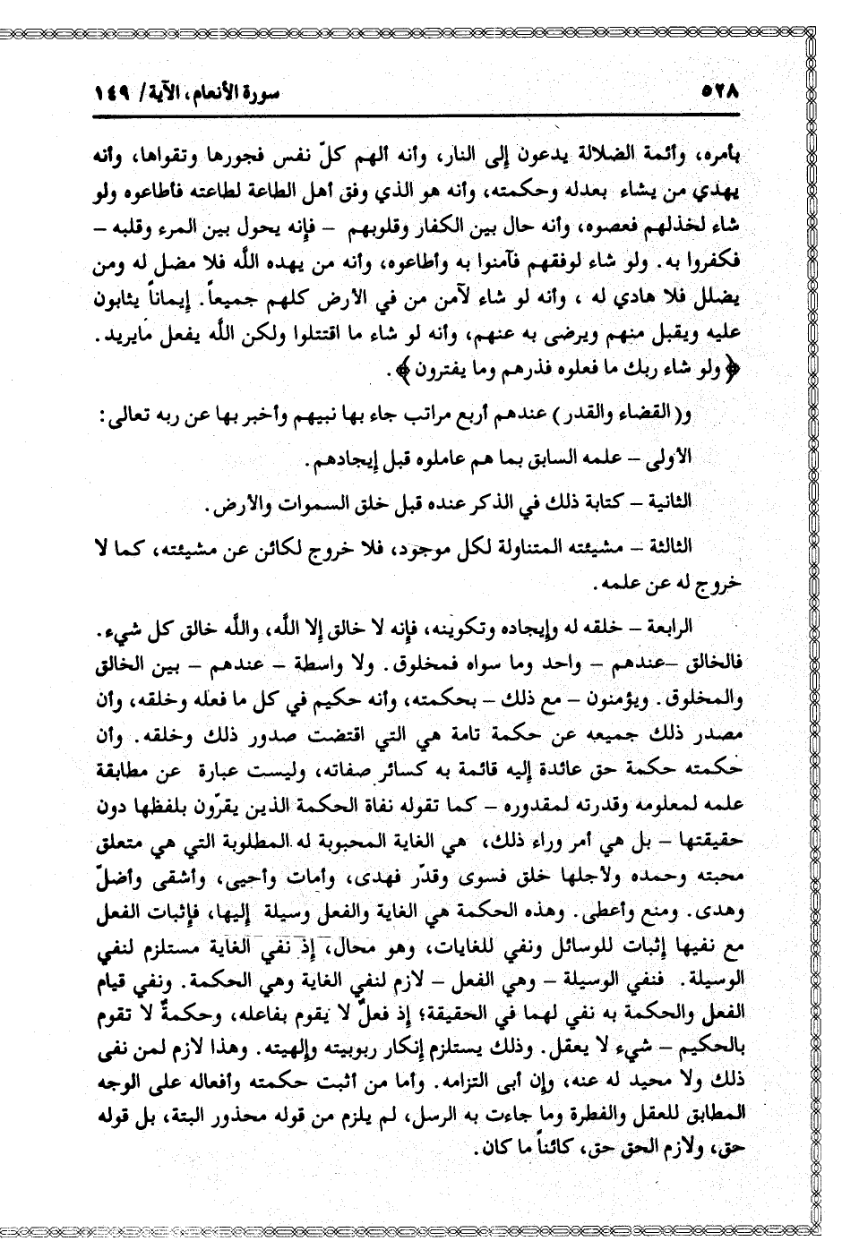 و (القضاء والقدر) عندهم أربع مراتب جاء بها نبيهم وأخبر بها عن ربه تعالى: