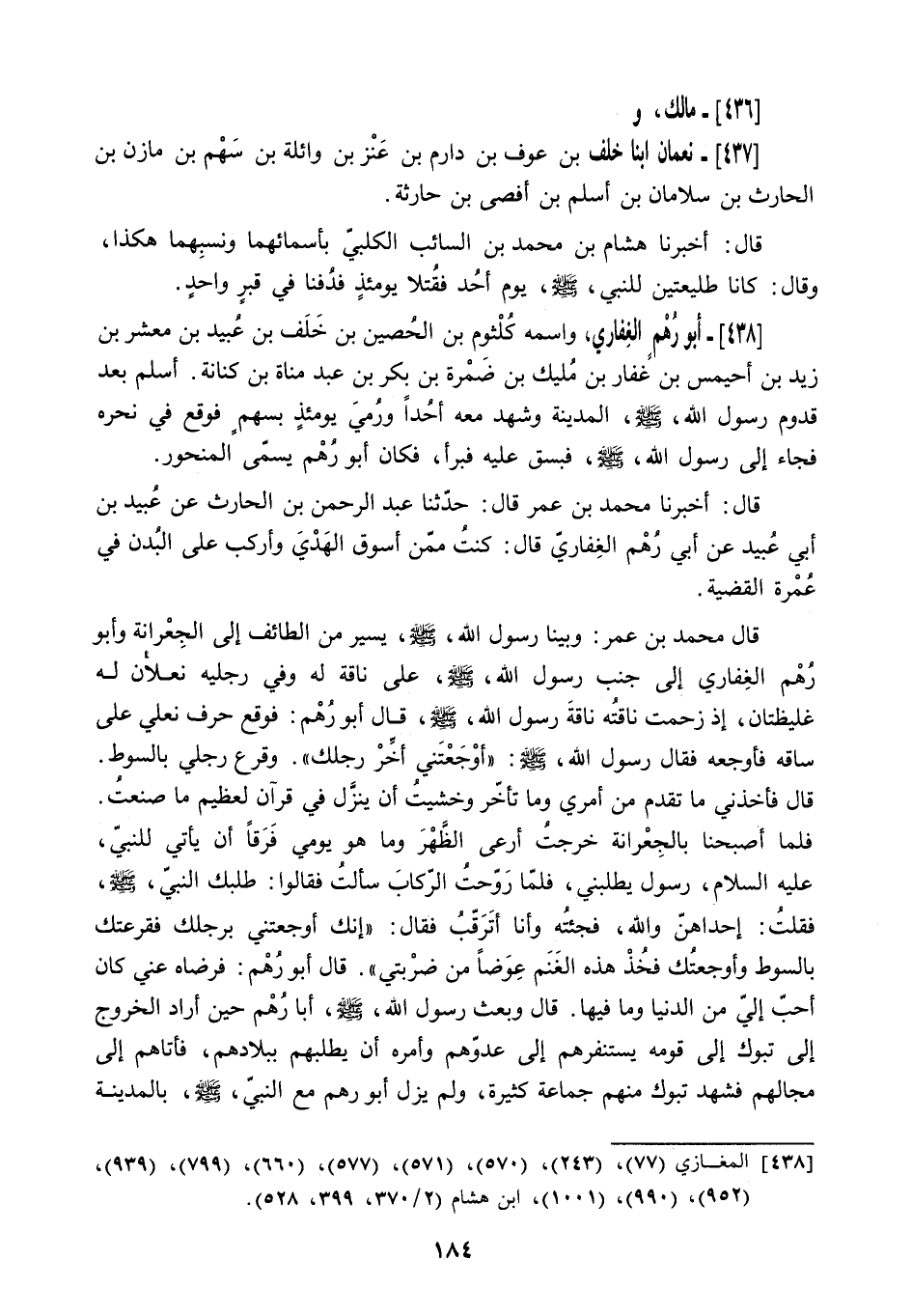 438 المغازي (77) ، (243) ، (570) ، (571) ، (577) ، (660) ، (799) ، (939) ، (952) ، (990) ، (1001) ، ابن هشام (2/ 370، 399، 528) .
