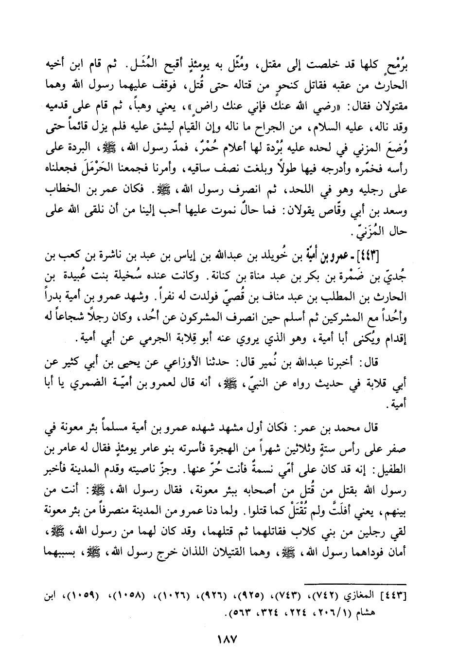 443 المغازي (742) ، (743) ، (925) ، (926) ، (1026) ، (1058) ، (1059) ، ابن هشام (1/ 206، 224، 324، 563) .