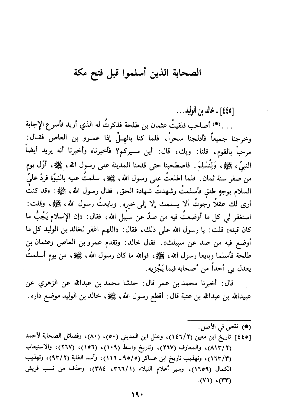 445 تاريخ ابن معين (2/ 146) ، وعلل ابن المديني (50) ، (80) ، وفضائل الصحابة لأحمد (2/ 813) ، والمعارف (267) ، وتاريخ واسط (109) ، (156) ، (267) ، والاستيعاب (3/ 163) ، وتهذيب تاريخ ابن عساكر (5/ 95- 116) ، وأسد الغابة (2/ 93) ، وتهذيب الكمال (1659) ، وسير أعلام النبلاء (1/ 366، 384) ، وحذف من نسب قريش (33) ، (71) .