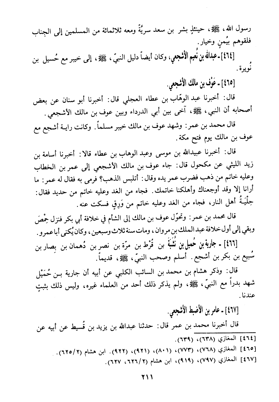 465 المغازي (768) ، (773) ، (801) ، (921) ، (922) . ابن هشام (2/ 625) .
