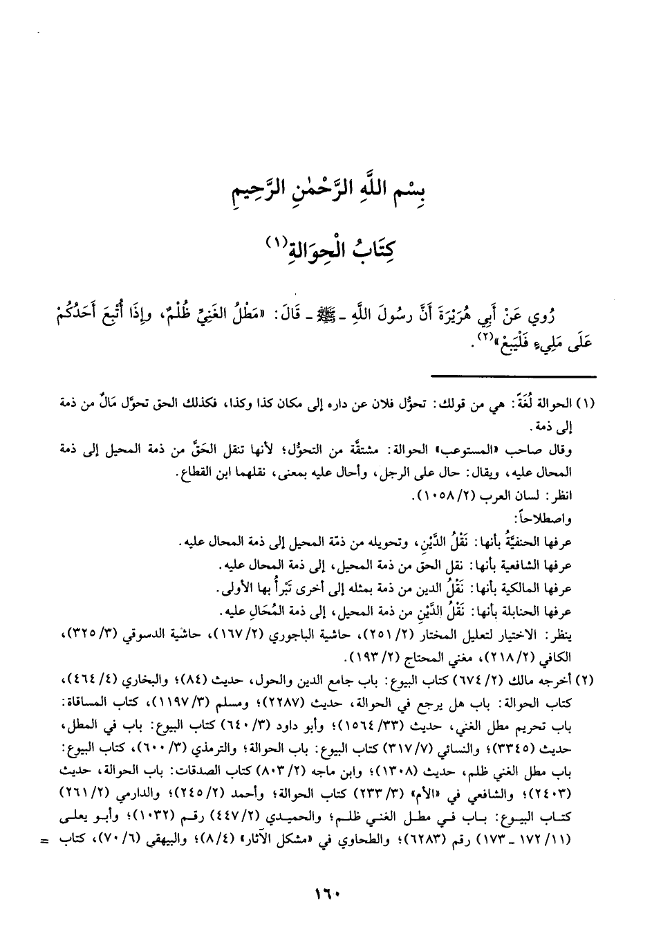 روي عن أبي هريرة أن رسول الله- صلى الله عليه وسلم- قال: "مطلُ الغني ظلم، وإذا أُتبع أحدكم على مليء فليبع".