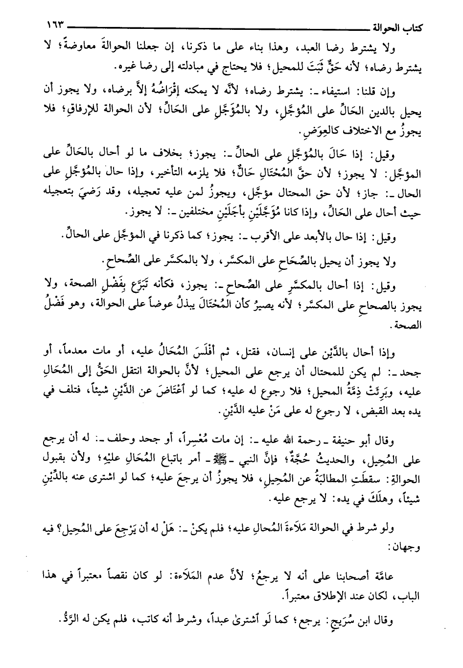 وقيل: إذا حال بالمؤجل على الحال-: يجوز؛ بخلاف ما لو أحال بالحال على المؤجل: لا يجوز؛ لأن حق المحتال حال؛ فلا يلزمه التأخير، وإذا حال بالمؤجل على الحال-: جاز؛ لأن حق المحتال مؤجل، ويجوز لمن عليه تعجيله، وقد رضي بتعجيله حيث أحال على الحال، وإذا كانا مؤجلين بأجلين مختلفين-: لا يجوز.