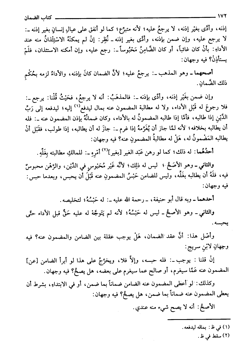 وأصل هذا: أن عقد الضمان، هل يوجب عقلة بين الضامن والمضمون عنه؟ فيه وجهان لابن سريج: