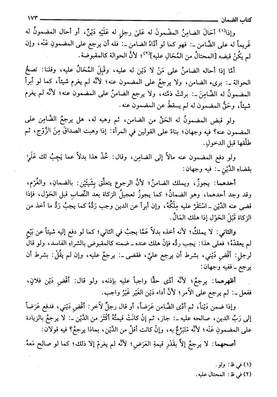 أحدهما: يجوز، ويملك الضامن؛ لأن الرجوع يتعلق بشيئين: بالضمان، والغُرم، وقد وجد أحدهما، وهو الضمان؛ كما يجوز تعجيل الزكاة بعد النصاب قبل الحول، فإذا قضى عنه الدين- استقر عليه مِلكه، وإن أبرأ عن الدين وجب رده كما يجب رد ما أخذ من الزكاة قبل الحول إذا هلك المال.