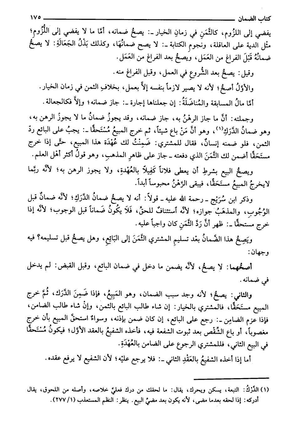 وذكر ابن سريج- رحمة الله عليه- قولاً: أنه لا يصح ضمان الدرك؛ لأنه ضمان قبل الوجوب، والمذهب جوازه؛ لأنه استئناف للحق، فلا يكون ضماناً قبل الوجوب؛ لأنه إذا خرج مستحقاً-: ظهر أن رد الثمن كان واجباً عليه.