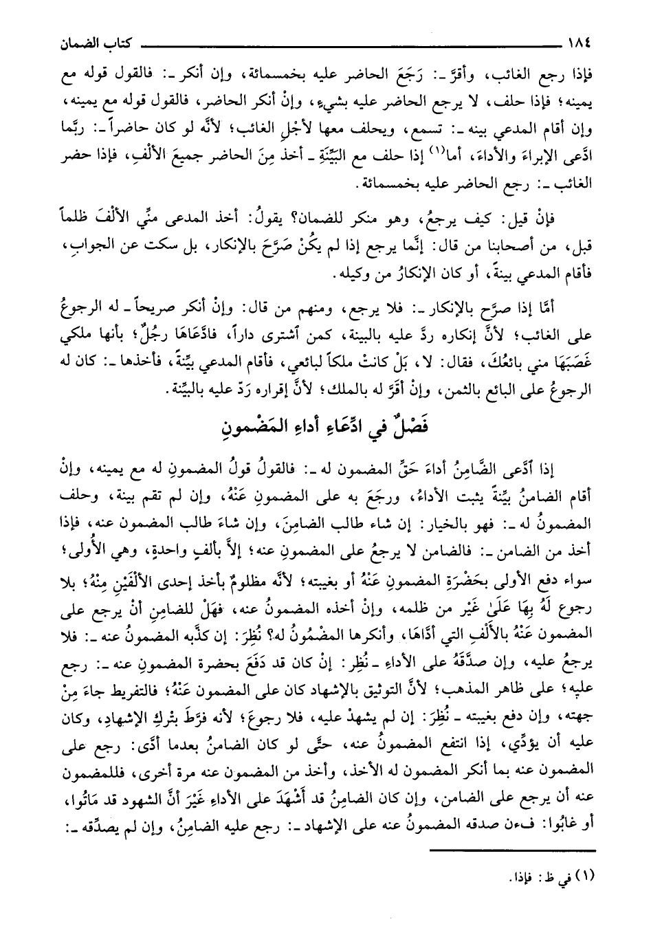 فصلٌ في ادعاء أداء المضمون