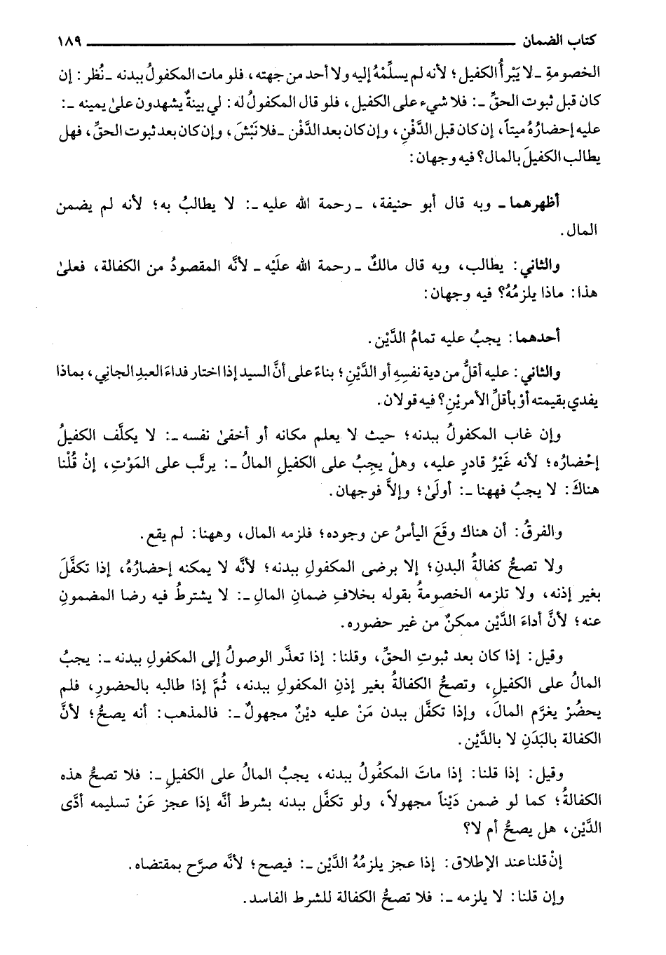 وقيل: إذا كان بعد ثبوت الحق، وقلنا: إذا تعذر الوصول إلى المكفول ببدنه-: يجب المال على الكفيل، وتصح الكفالة بغير إذن المكفول ببدنه، ثم إذا طالبه بالحضور، فلم يحضر يغرَّم المال، وإذا تكفل ببدن من عليه دين مجهول-: فالمذهب: أنه يصح؛ لأن الكفالة بالبدن لا بالدين.