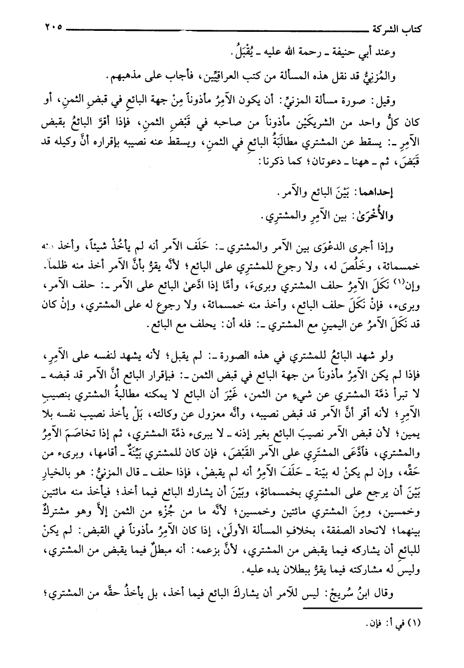 وقيل: صورة مسألة المزني: أن يكون الآمر مأذوناً من جهة البائع في قبض الثمن، أو كان كل واحد من الشريكين مأذوناً من صاحبه في قبض الثمن، فإذا أقر البائع بقبض الآمر: يسقط عن المشتري مطالبة البائع في الثمن، ويسقط عنه نصيبه بإقراره أن وكيله قد قبض، ثم- ههنا- دعوتان؛ كما ذكرنا: