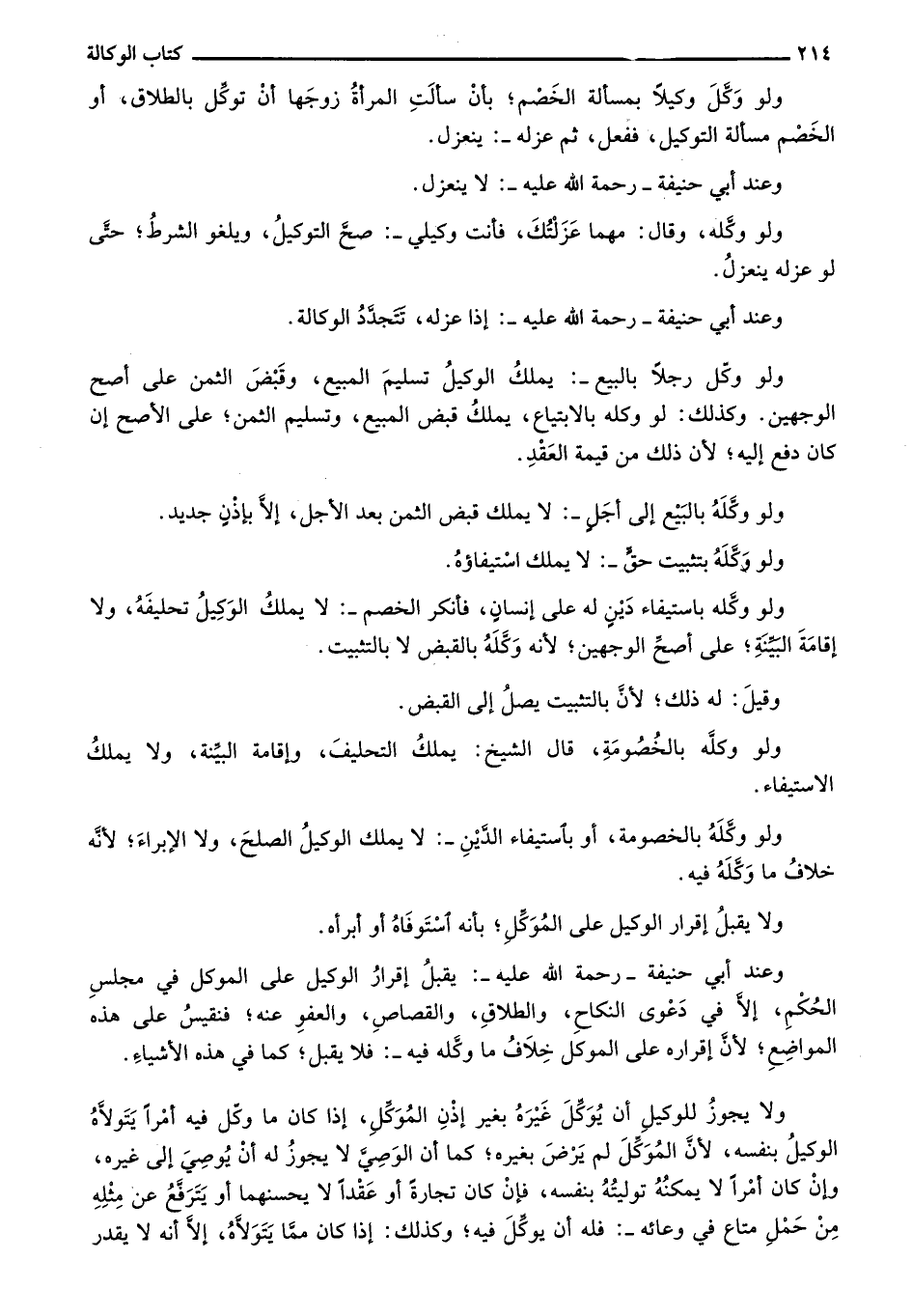 وعند أبي حنيفة- رحمة الله عليه-: يقبل إقرار الوكيل على الموكل في مجلس الحُكم، إلا في دعوى النكاح، والطلاق، والقصاص، والعفو عنه؛ فنقيس على هذه المواضع؛ لأن إقراره على الموكل خلاف ما وكله فيه: فلا يقبل؛ كما في هذه الأشياء.