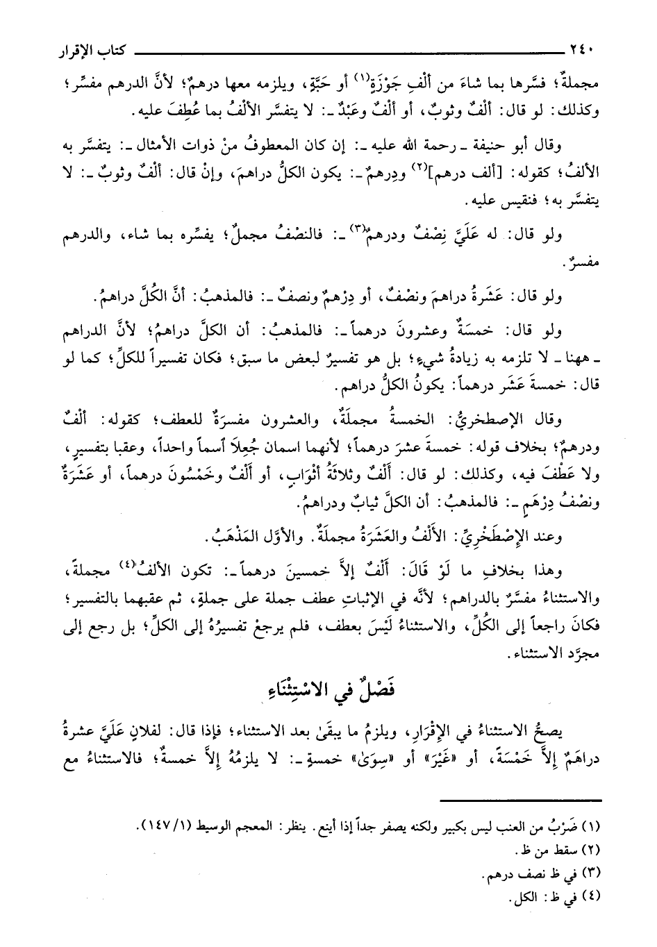 فصلٌ في الاستثناء