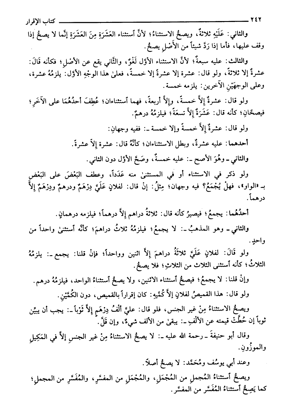 ويصح استثناء المُجمل من المجمل، والمجمل من المفسر، والمفسر من المجمل؛ كما يصح استثناء المفسر من المفسر.