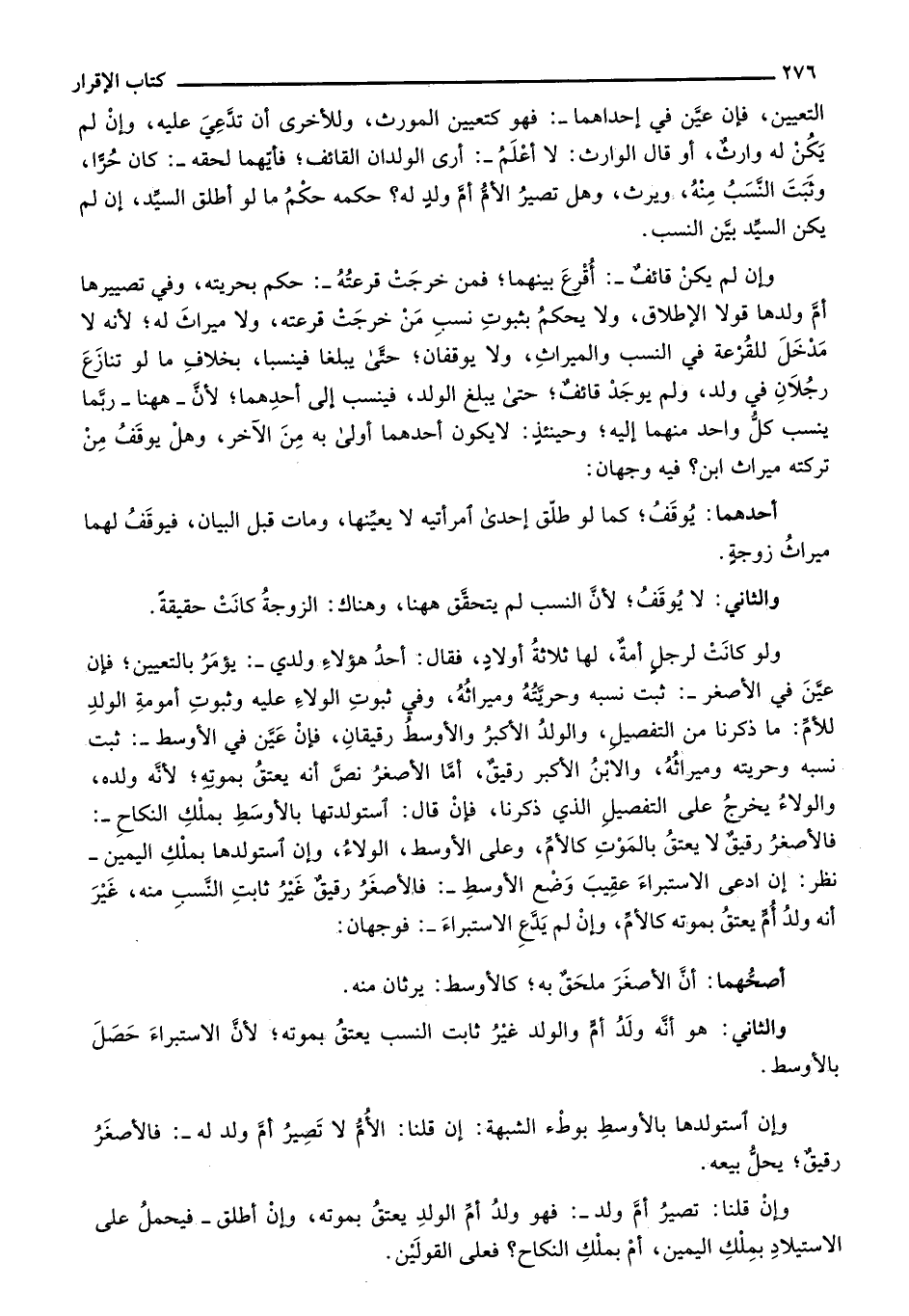 ولو كانت لرجل أمة، لها ثلاثة أولاد، فقال: أحد هؤلاء ولدي: يؤمر بالتعيين؛ فإن عين في الأصغر: ثبت نسبه وحريته وميراثه، وفي ثبوت الولاء عليه وثبوت أمومة الولد للأم: ما ذكرنا من التفصيل، والولد الأكبر والأوسط رقيقان، فإن عين في الأوسط: ثبت نسبه وحريته وميراثه، والابن الأكبر رقيق، أما الأصغر نص أنه يعتق بموته، لأنه ولده، والولاء يخرج على التفصيل الذي ذكرنا، فإن قال: استولدتها بالأوسط بملك النكاح: فالأصغر رقيق لا يعتق بالموت كالأم، وعلى الأوسط، الولاء، وإن استولدها بملك اليمين- نظر: إن ادعى الاستبراء عقيب وضع الأوسط: فالأصغر رقيق غير ثابت النسب منه، غير أنه ولد أم يعتق بموته كالأم، وإن لم يدَّع الاستبراء: فوجهان: