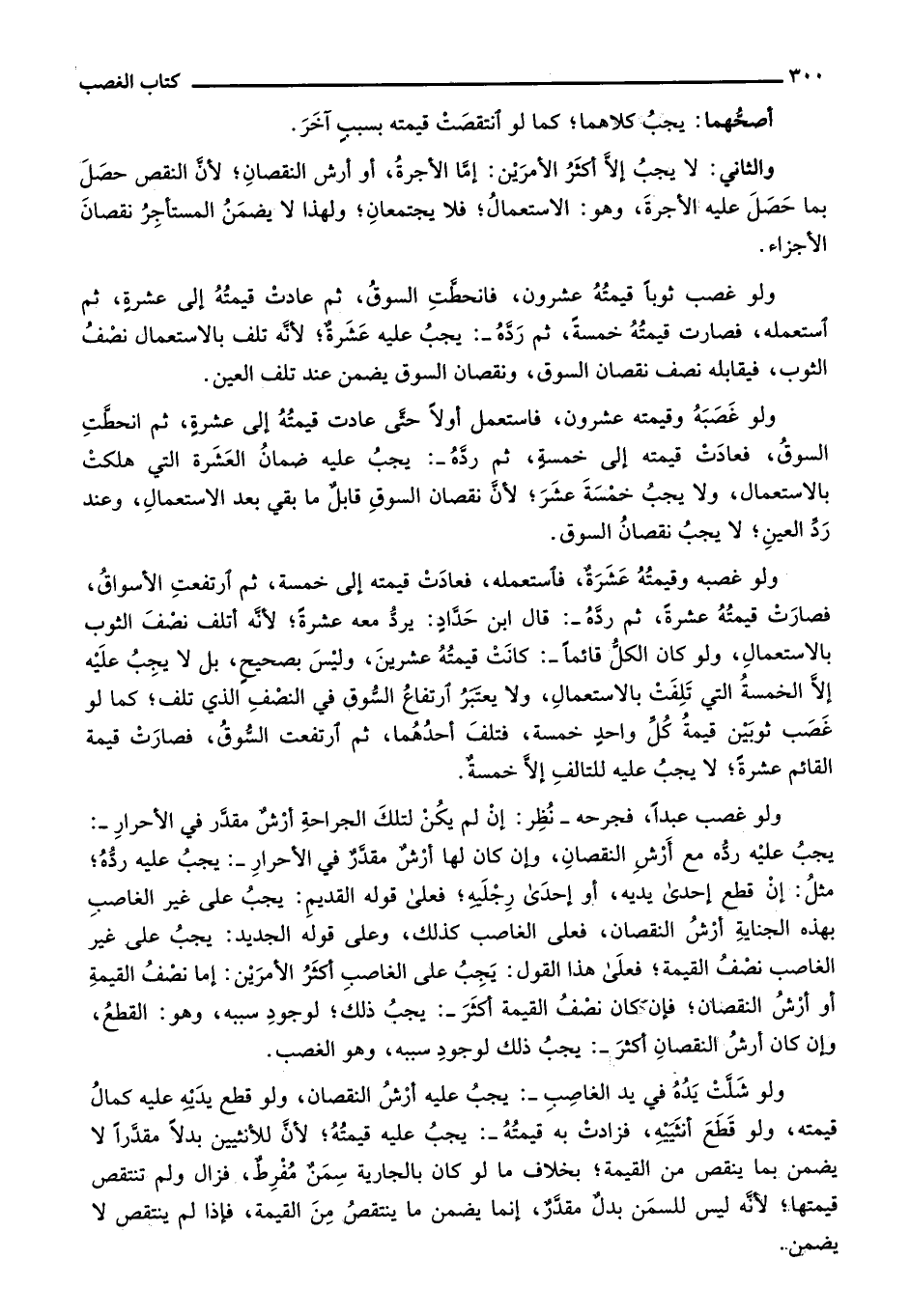 ولو غصبه وقيمته عشرة، فاستعمله، فعادت قيمته إلى خمسة، ثم ارتفعت الأسواق، فصارت قيمته عشرة، ثم رده: قال ابن حداد: يرد معه عشرة؛ لأنه أتلف نصف الثوب بالاستعمال، ولو كان الكل قائماً: كانت قيمته عشرين، وليس بصحيح، بل لا يجب عليه إلا الخمسة التي تلفت بالاستعمال، ولا يعتبر ارتفاع السوق في النصف الذي تلف؛ كما لو غصب ثوبين قيمة كل واحد خمسة، فتلف أحدهما، ثم ارتفعت السوق، فصارت قيمة القائم عشرة؛ لا يجب عليه للتالف إلا خمسة.
