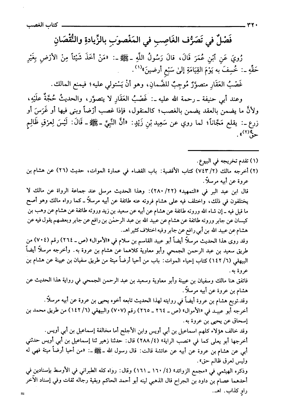 روي عن ابن عمر قال، قال رسول الله- صلى الله عليه وسلم-: "من أخذ شيئاً من الأرض بغير حقه: خسف به يوم القيامة إلى سبع أرضين".