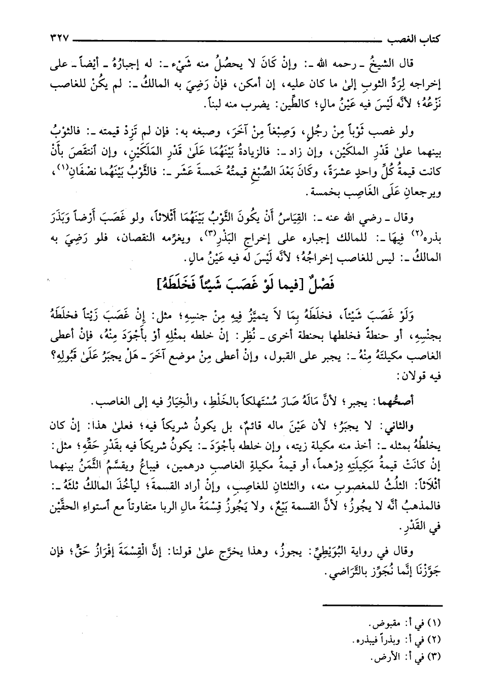 فصلٌ [فيما لو غصب شيئاً فخلطه]